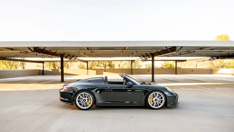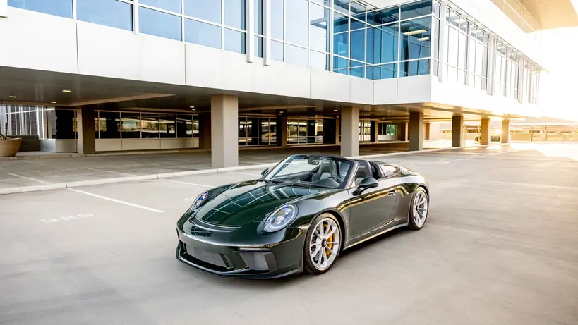 A tribute to Porsche’s rich heritage, this 2019 Porsche 911 (991) Speedster is a rare and exhilarating open-top driving experience, built as part of a limited run of just 1,948 examples. This particular car, chassis 1233, is finished in Paint-to-Sample Brewster Green, a deep and refined shade that sets it apart from standard offerings. With fewer than 1,170 miles from new, it remains in exceptional condition, showcasing its original $320,800 MSRP with carefully selected options. The 991-generation Speedster’s naturally aspirated flat-six, paired with a precise 6-speed manual gearbox, delivers an unfiltered connection to the road, while features like the Sport Chrono Package and PCCBs ensure performance is at the forefront. The front axle lift system adds practicality, making this collector-grade machine as usable as it is thrilling.
